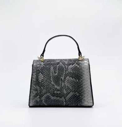 Our luxurious python embossed handbag, crafted from high-quality, vegan-friendly materials boasts a stunning snakeskin-like texture that is sure to turn heads wherever you go. The gold-tone hardware adds a touch of elegance to this already opulent accessory, making it the perfect choice for any occasion. Whether you're dressing up for a night out or simply running errands, our luxury python embossed handbag is the ideal finishing touch to any outfit. Order yours today and experience the ultimate in style and comfort.