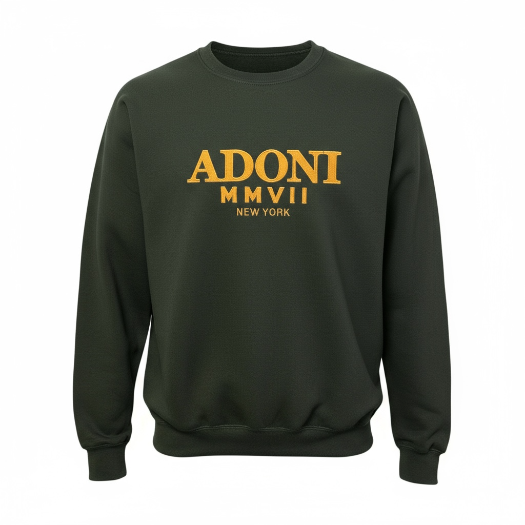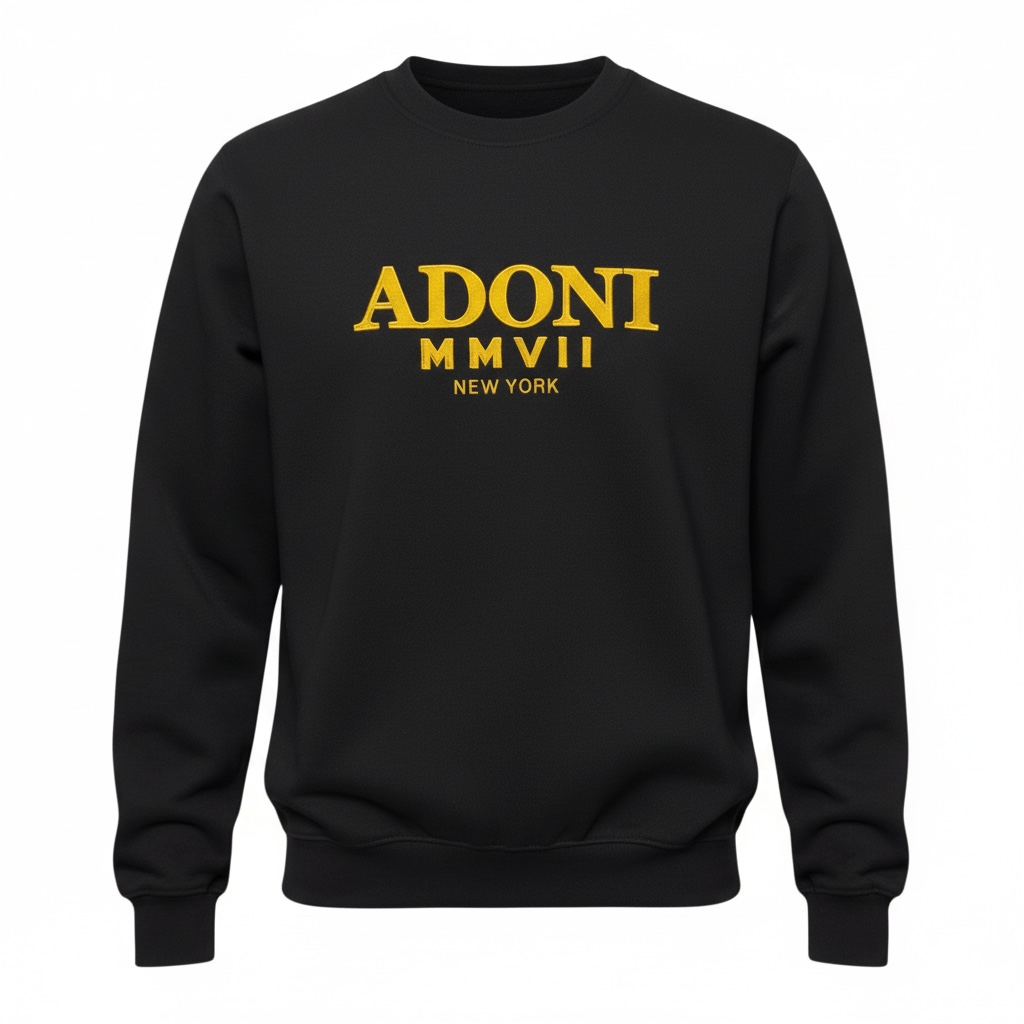ADONI MMVII Embroidered Sweat Shirt is the perfect addition to any wardrobe with its relaxed fit and stylish design featuring intricate embroidery. Made with high-quality materials, you'll experience ultimate comfort while still looking fashionable. Add this versatile sweatshirt to your collection today. Fits true to U.S. Unisex Sizing.