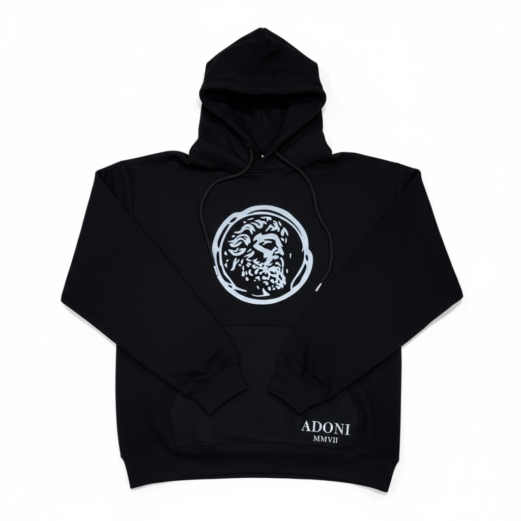 ADONI MMVII Black Reflective Logo Hoodie.