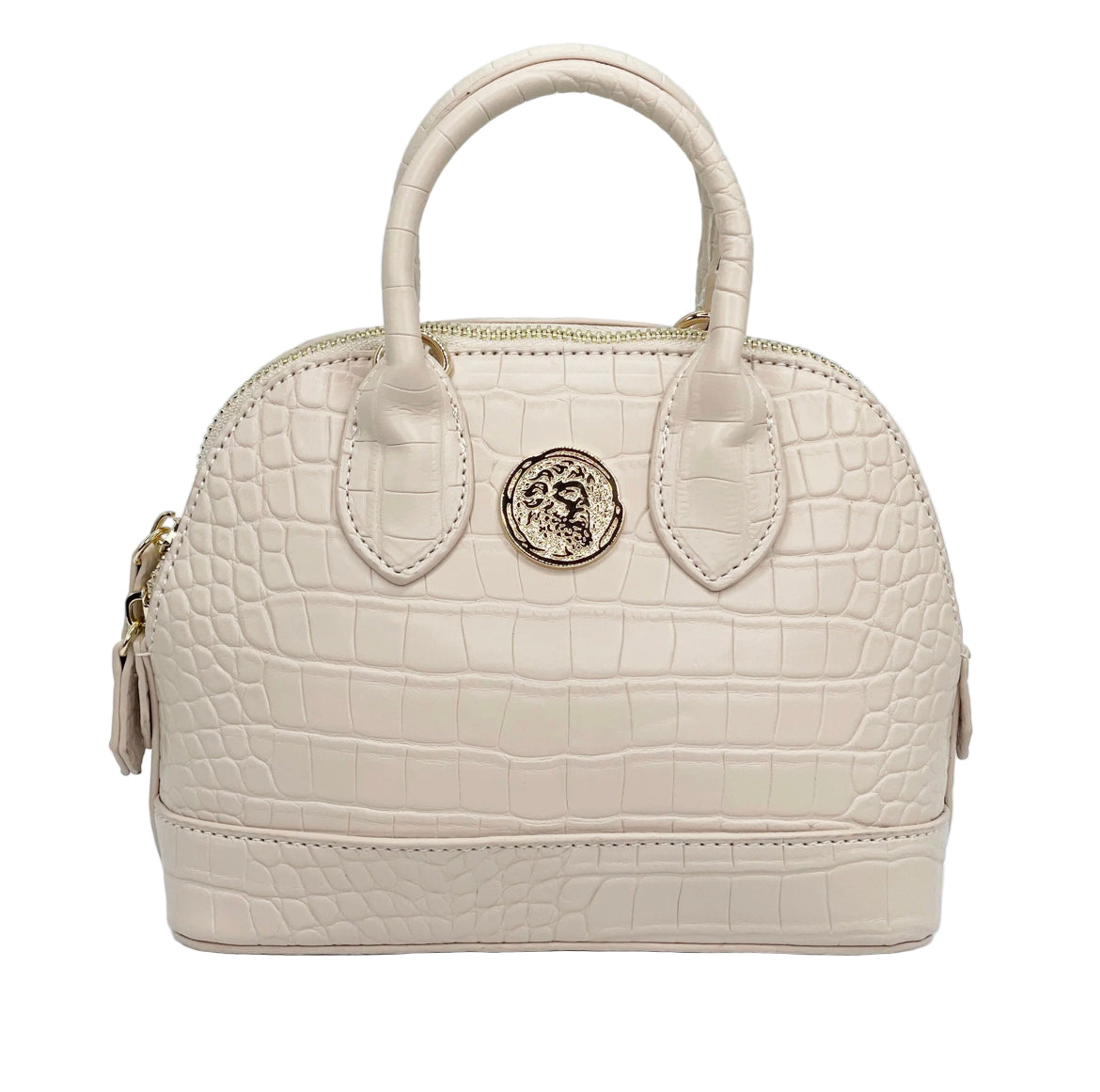 Tashi Black Ostrich Embossed Nano Handbag marks everything off your checklist; from the structured chic design and posh suede lining, to the gold plated ADONI MMVII insignia. This chic nano is guaranteed to be your favorite phone and lipgloss Chauffeur and turn heads while doing it.